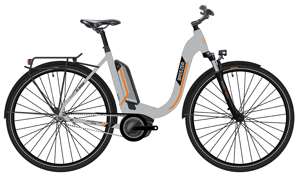 | Main frame: | Breezer Hydroformed Aluminum, Bosch Frame Type Battery semi-integrated design, Bosch Motor Interface, Custom-Tapered Aluminum, Breezer Slide-&-Split Dropouts |