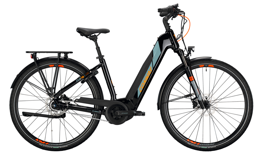 Udstyr: affjedringsgaffel, affjedring sadelpind, rammelås, kædebeskyttelse, elektronisk skubbehjælp, skærme
