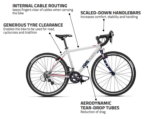 Letvægts- og farvestrålende stel og perfekt designet til at give både komfort og et effektivt tråd – børn komme længere og hurtigere på en Frog.