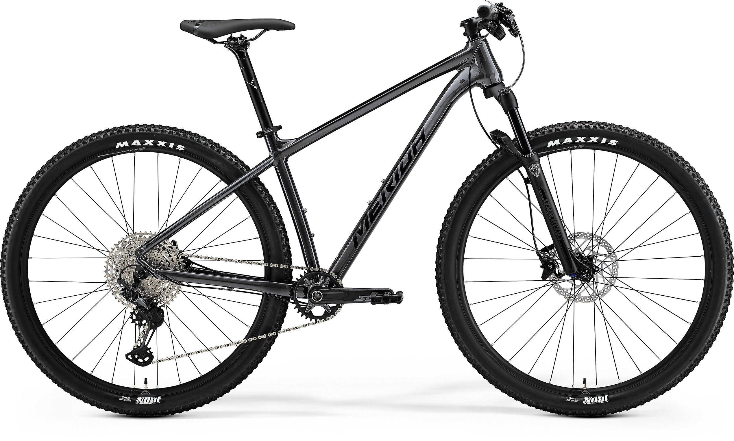 Big.Nine SLX-Edition. Stel: Big.Nine TFS III. Forgaffel: Manitou Makhor Comp, air, 100mm remote lockout. Kranksæt: Shimano SLX, 32T. Gear: 12. Skiftegreb:Shimano SLX. Bagskifter: Shimano XT M8100 Shadow+. Bremser: Shimano M4100. Fælg: Merida Comp CC. Nav: Shimano MT400/Shimano MT401. Dæk: Maxxis Ikon. Kassette: Shimano Deore M6100, 10-51T. Kæde: KMC X12. Styr: Merida Expert CC 720 mm, flat. Frempind: Merida Expert CC. Sadel: Merida Comp CC. Sadelpind: Merida Comp CC, 30.9 mm. Pedal: VPE-891. Farve: Anthracite (sort). Størrelser: S(14,5”)-M(17”)-L(18,5”)-XL(20”)-XXL(22”). Anb. pris: 10.998,00.